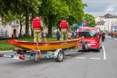 Eine Schar an Helfern zog anhand einer eindrucksvollen, in mehrere Staffeln gegliederten, Parade vor dem Landhaus vorbei. Begonnen von der ersten, koordinierten Löschhilfe bis hin zur modernen Technik wurde präsentiert, womit die Feuerwehren heute arbeiten. Begleitet wurden die Staffeln jeweils von einer Feuerwehrmusikkapelle aus Oberösterreich.