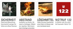 Flackernde Kerzen und Lichter verbreiten gerade zur Adventzeit eine besinnliche Stimmung. Doch alle Jahre wieder steigen in diesem Zeitraum die Brandfälle sprunghaft an. In den meisten Fällen sind Unachtsamkeit die Gründe dafür. Brände können durch den sorgsameren Umgang mit Kerzen und dem Anbringen von Rauchmeldern vermieden werden.