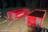 Ebenso wurden inzwischen zwei Abrollbehälter "Mulde" nach Hirschwang gebracht. Zusammen bilden diesese beiden Behältnisse einen Löschwasservorrat von 44.000 Litern. Dieser wird entweder von Bodenpersonal verwendet oder dient auch für die Bambi-Buckets als Löschwasserentnahmestelle. Gefüllt wird diese über drei Großtanklöschfahrzeuge, die im jeweils 17 km langen Pendelverkehr die Befüllung übernehmen.