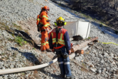 Der Löschwasserbehälter für den Blackhawk, der dem Salzburger und Oö. Landes-Feuerwehrverband gemeinsam gehört, wurde mit Boden-Bedienpersonal ins Brandgebiet geschickt.
