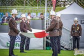 Übergabe der Bewerbsfahne: Der letzte Landes-Feuerwehrbewerb fand im Jahre 2019 in Frankenburg am Hausruck statt. Bei der feierlichen Eröffnung übergab die Fahnenabordnung der Austragungs-Feuerwehr mit der Fahnenhissung die Bewerbsfahne an die Verantwortlichen aus St. Peter am Wimberg.