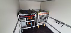 Die Abmessung und Ausführung des AW-LOGISTIK eines heimischen Herstellers erlauben sowohl den trockenen und staubfreien Transport von bis zu 6 Rollcontainern RC oder den Transport von Material auf 6 Europaletten. Das Ladegut kann sowohl über das Airline-Schienensystem als auch über Verzurrpunkte gesichert werden. Selbstverständlich werden die dazu notwendigen Tragegurte, Sicherungsgurte, Sperrstangen usw. mitgeführt.