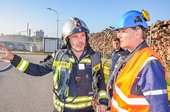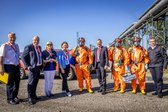 Information zu Gruppenfoto: v.l.n.r. (ausgenommen Mitglieder in Schutzausrüstung): LBDSTV Michael Hutterer, MR Siegfried Jachs (BMI), Hanna Jahns (EU-Kommission), LR Michaela Langer-Weninger, LH Thomas Stelzer, FPräs Robert Mayer