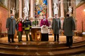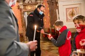 Nach dem das Friedenslicht von ORF-Redakteur Günter Madlberger an den Oö. Landes-Feuerwehrverband übergeben wurde, konnte es im Rahmen einer kleinen Feier am 17. Dezember in der Stiftsbasilika St. Florian an die Abordnungen der 18 Feuerwehrbezirke verteilt werden. Landes-Feuerwehrkommandant Robert Mayer lies in seiner Rede das außergewöhnliche Jahr 2020 Revue passieren und nutze die Gelegenheit, um den Feuerwehren für ihre Leistungen in dieser besonderen Zeit zu danken. „Vieles war sehr herausfordernd für das gesamte Feuerwehrwesen in Oberösterreich. Umso wichtiger ist es, auf dem mühevollen Weg zurück in eine Normalität die Kameradschaft in den Feuerwehren im kommenden Jahr 2021 besonders hoch zu halten“, so der Landes-Feuerwehrkommandant. Gestaltet wurde die Feier von Generalabt Probst Johann Holzinger und Landes-Feuerwehrkurat Adolf Trawöger sowie Bläsern der Feuerwehrmusik Windhaag bei Freistadt.