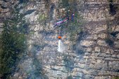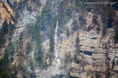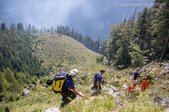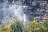 Erste Löschversuche auch mit Unterstützung der Bergrettung mussten abgebrochen werden. Es lösten sich mehrere Steine, Wurzelstöcke sowie brennende Baustämme und stürzten in die Tiefe. Weil das Verletzungsrisiko zu groß wurde mussten sich die Bergretter aus der Wand zurückziehen.