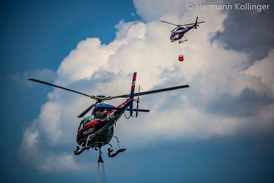 Seit Dienstag, 21. August 2018 lodert an der Echernwand in Hallstatt ein gefährlicher Waldbrand der die Einsatzkräfte in unwegsamen Gelände seit Tagen fordert. Mittels Hubschraubern - am Donnerstag sogar mit einem Black-Hawk des Bundesheeres, der bis zu 3.000 Liter Löschwasser transportieren kann - wird versucht den Brand weiter einzudämmen.