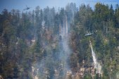 Allein am Mittwoch führten die Hubschrauber der Einsatzkräfte 400 Flüge durch und leerten Wasser in die Wand.