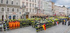 Alle neun Landesfeuerwehrverbände beteiligten sich an der Geräteschau am Linzer Hauptplatz und präsentierten das breite Spektrum der österreichischen Feuerwehr-Katastrophenhilfe.