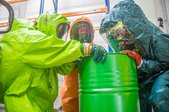 6. Auf einem Firmengelände kam es bei Räumarbeiten zu einem Schadstoffaustritt. Die Feuerwehreinheiten bekamen den Einsatzbefehl, den Austritt dieser gefährlichen Stoffe einzudämmen und die weiteren Räumungsmaßnahmen durchzuführen. Abschließend zu diesem Szenario wurden die notwendigen Dekontaminationsmaßnahmen gesetzt.