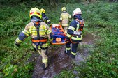 4. Ausgelöst über Berichte einer abgängigen Wandergruppe wurde eine Personensuche eingeleitet. Die eingesetzten Feuerwehrkräfte entdeckten die völlig erschöpfte Gruppe in steilem Gelände, eine Rettung – aufgrund von Verletzungen teilweise liegend – musste über Seile und Korbtragen durchgeführt werden.