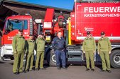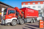 Der Vierachser, von dem auch im Zuge des neuen Logistikkonzeptes Dreiachsfahrzeuge folgen werden, ist unter anderem mit einem Hakengerät und einem 75-Meter-Tonnen Kran ausgestattet. Technische Details folgen dann im Brennpunkt 1 oder 2/2020.