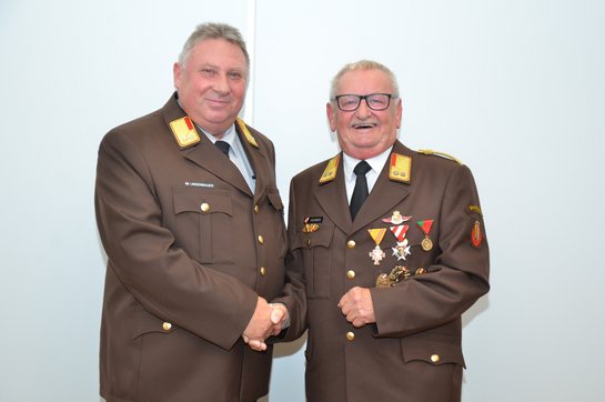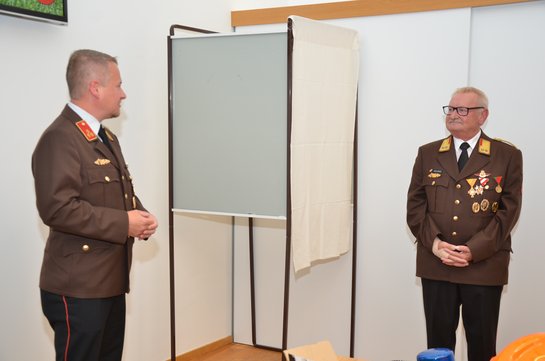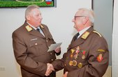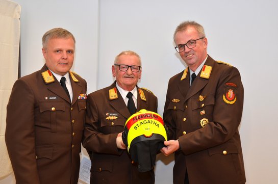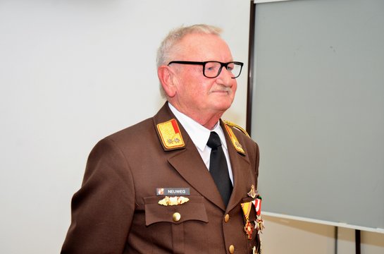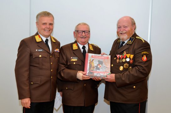 Für BR Neuweg hieß es Abschied zu nehmen, seine ergreifende Rede war gefüllt mit Emotionen, Erlebnissen, Höhen und Tiefen aus den letzten 18 Jahren. Als Dank für die geleistete Arbeit durfte Bezirks-Feuerwehrkommandant OBR Herbert Ablinger in Vertretung des Landes-Feuerwehrkommandanten den "Ehren-Brandrat" überreichen. Natürlich gab es auch ein paar persönliche Geschenke für den scheidenden Funktionär. Viel Gesundheit und weiterhin schöne Begegnungen wünschen wir "unserem Heli".