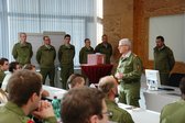 Als kleine Erinnerung erhielt der 25-Jährige Feuerwehrmann aus den Händen von Landes-Feuerwehrkommandant Dr. Wolfgang Kronsteiner sowie dem Leiter der Landes-Feuerwehrschule, Oberbrandrat Ing. Hubert Schaumberger, einen neuen Feuerwehrhelm, eine DVD mit dem Handbuch für die Grundausbildung sowie einen kniffliges Universalwerkzeug für unterwegs überreicht.