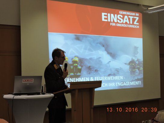 “Im Bezirk Braunau gibt es viele Vorzeigebetriebe, die im Einsatzfall nicht nur ihre Mitarbeiter für Einsätze freistellen, sondern auch Maschinen und Geräte abstellen, um im Notfall helfen zu helfen. Diese Kooperationen sind enorm wichtig für uns Feuerwehren”, betonte Bezirks-Feuerwehrkommandant Josef Kaiser. Eine besondere Gelegenheit bot sich beim Empfang der Wirtschaftskammer Braunau am 13. Oktober 2016, Unternehmen mit der „Florian Ehrenmedaille“ zu ehren und zu danken. Nach der Begrüßung durch den Leiter der Wirtschaftskammer Braunau, Mag. Klaus Berer und Obmann Klemens Steidl, referierte der bekannte Politologe Univ. Prof. Dr. Peter Filzmaier sehr humorvoll über aktuelle Themen der Politik. Im Anschluss an das Referat stand die Ehrung der Unternehmen, die sich besonders durch ihr Entgegenkommen gegenüber Feuerwehrmitglieder mit Freistellungen während der Arbeitszeit für Einsätze auszeichnen. “Selbstverständlichkeit Mitarbeiter freizustellen”