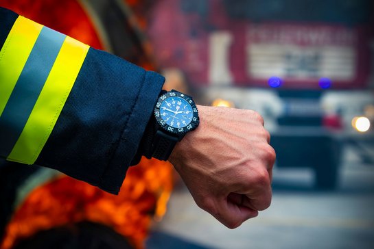 Feuerwehr Sportchronometer aus Edelstahl- Matt Schwarz, mit verschraubter Krone. Gehärtetes